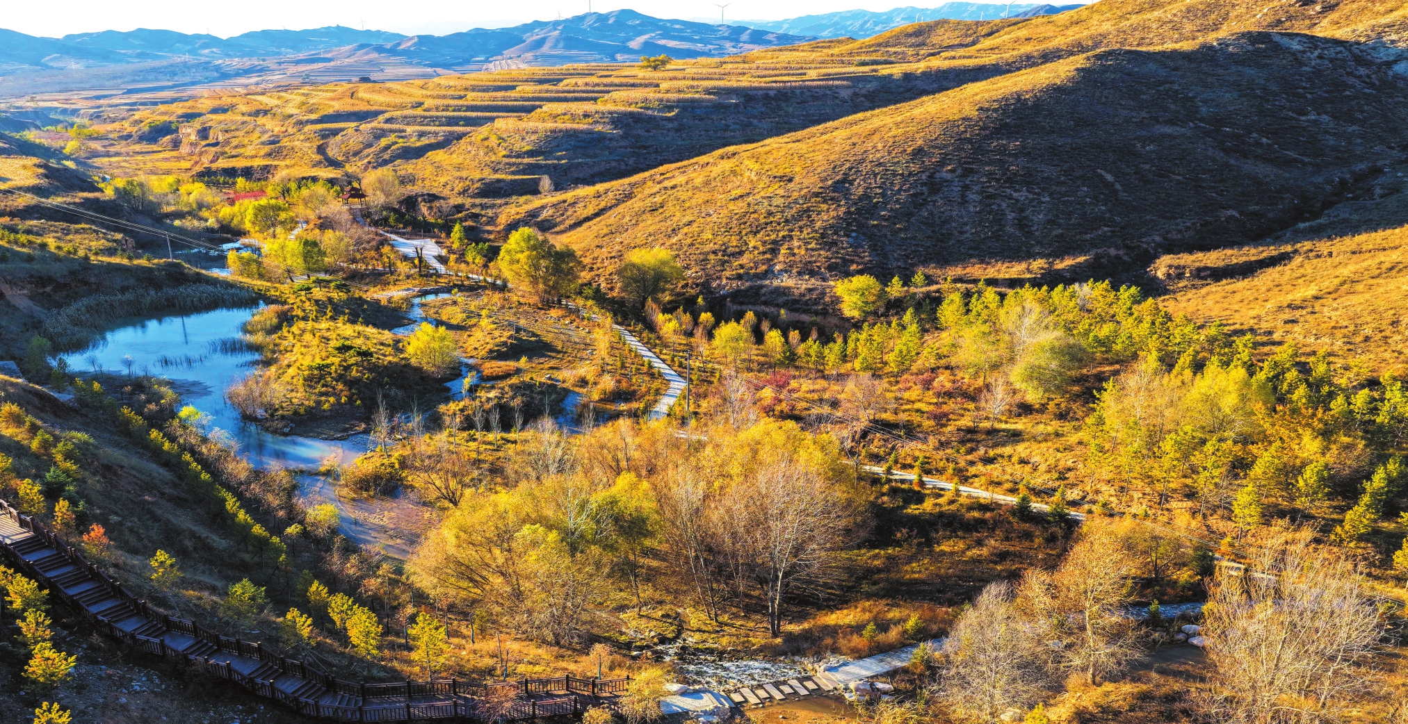 深秋時節滹沱河源頭層林盡染